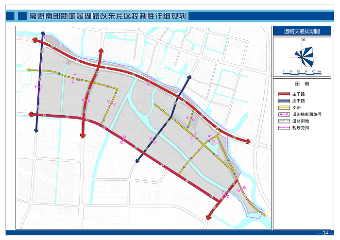 規(guī)劃次干路為金湖路和鐵琴南路,縱向布置,紅線寬度按28~30米控制。