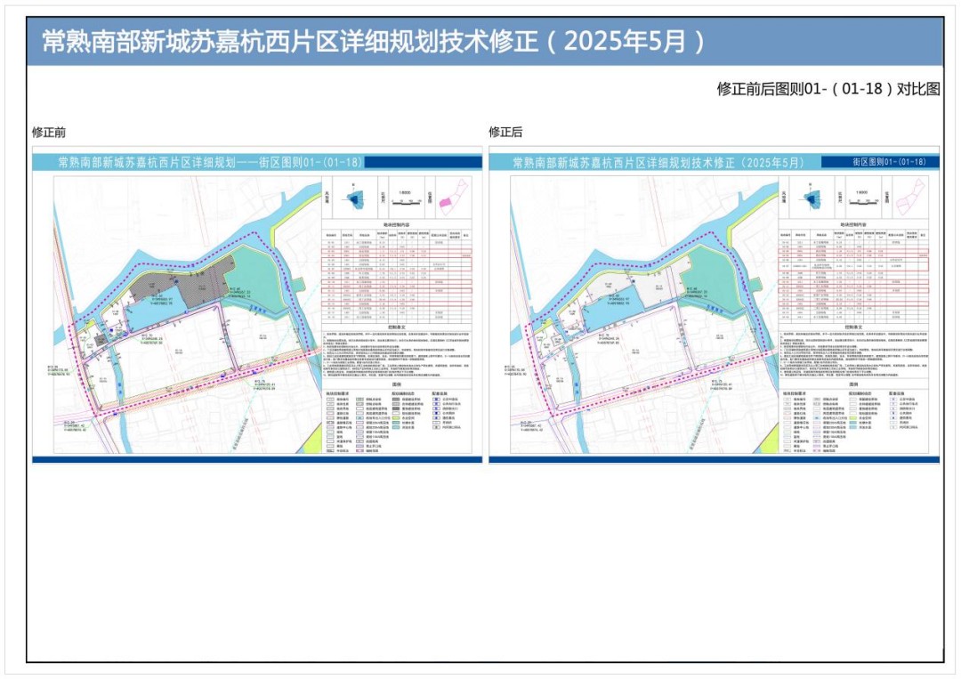 附圖二:常熟南部新城蘇嘉杭西片區(qū)詳細(xì)規(guī)劃技術(shù)修正——修正前后局部土地利用規(guī)劃對(duì)比圖
