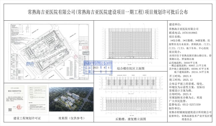 常熟海吉亞醫(yī)院有限公司(常熟海吉亞醫(yī)院建設(shè)項(xiàng)目一期工程)項(xiàng)目規(guī)劃許可批后